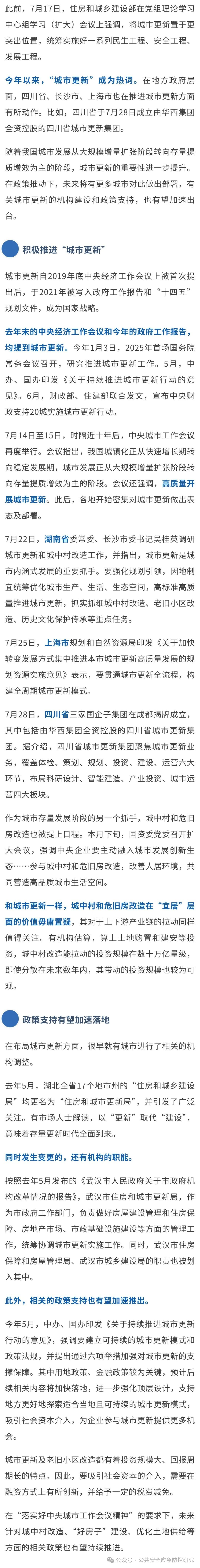 7月30日,中央政治局会议召开,提出落实好中央城市工作会议精神,高质量开展城市更新。这是继本月中旬的中央城市工作会议后,中央层面又一次对城市更新工作作出部署。